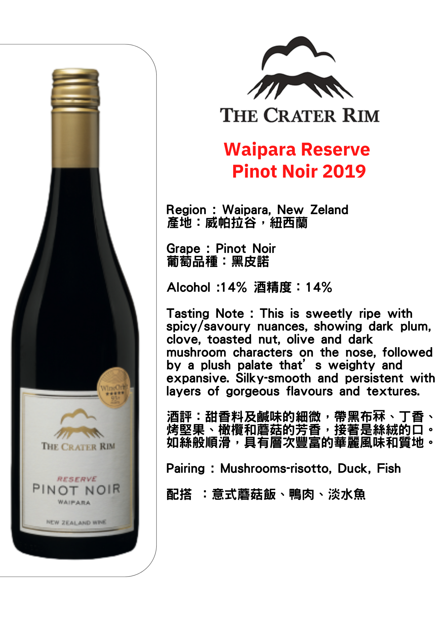 The Crater Rim Waipara "Reserve" Pinot Noir 2019