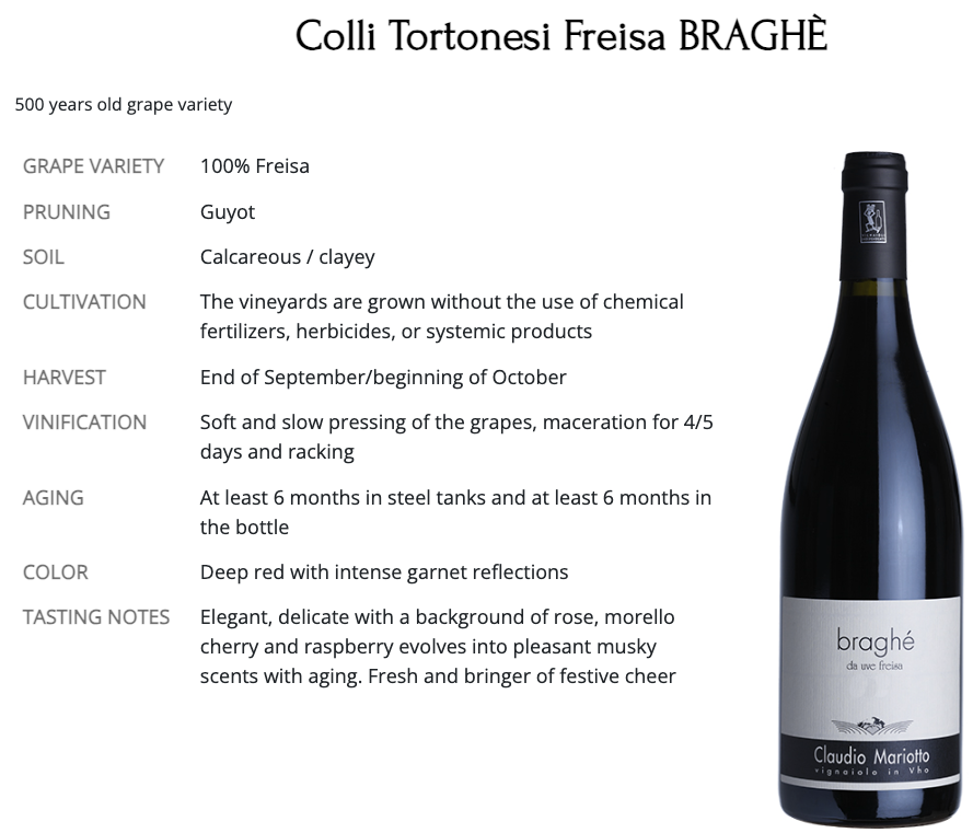 產地 : 皮埃蒙特 義大利 葡萄品種 : 弗雷伊薩 100% 酒精度 : 14%