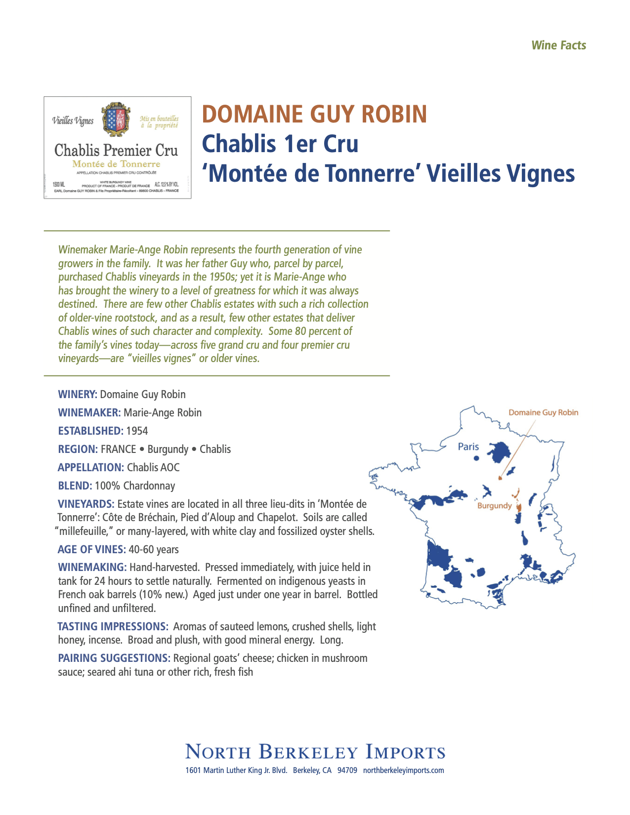Domaine Guy Robin et Fils Chablis 1er Cru 'Montée de Tonnerre' Vieilles Vignes 2023