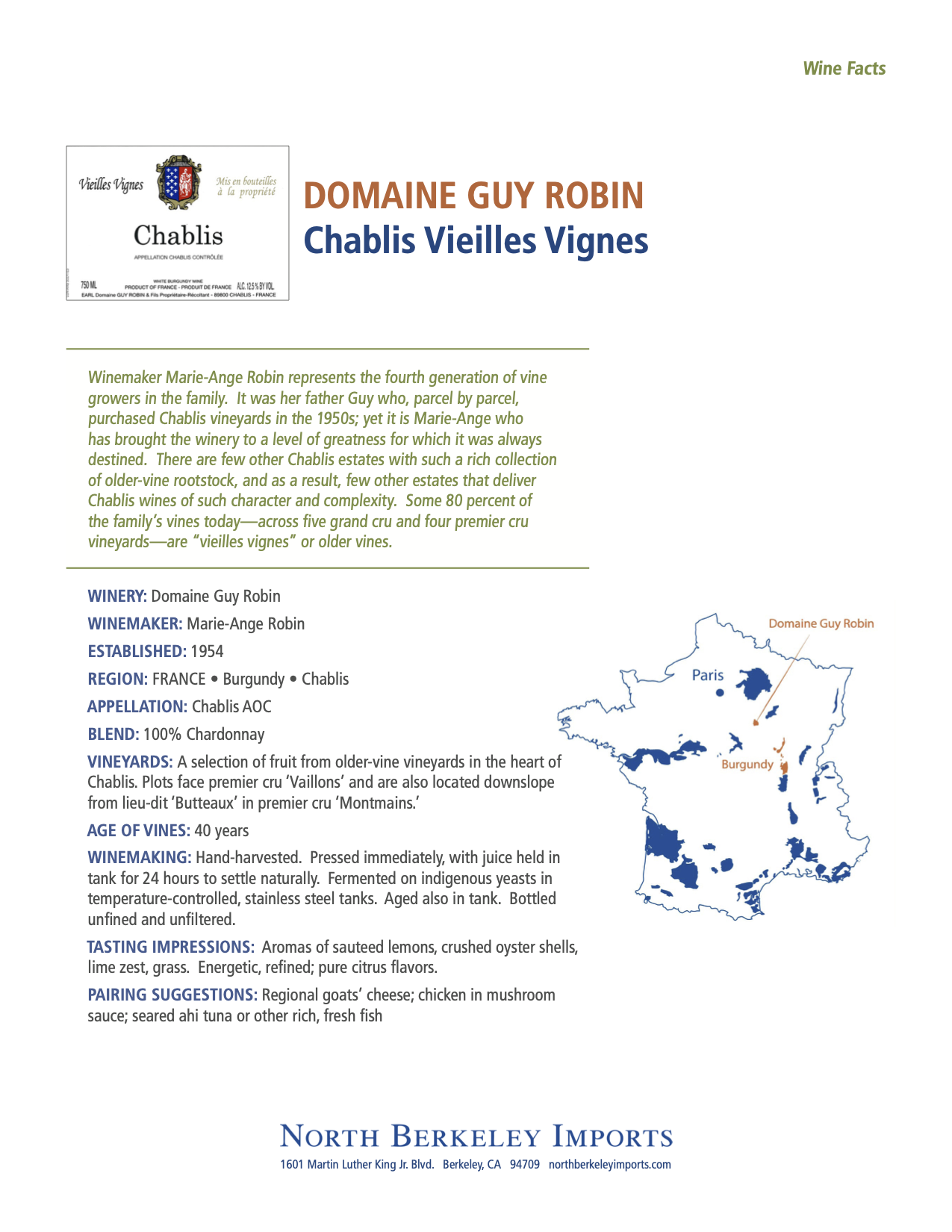 Domaine Guy Robin et Fils Chablis Vieilles Vignes 2023
