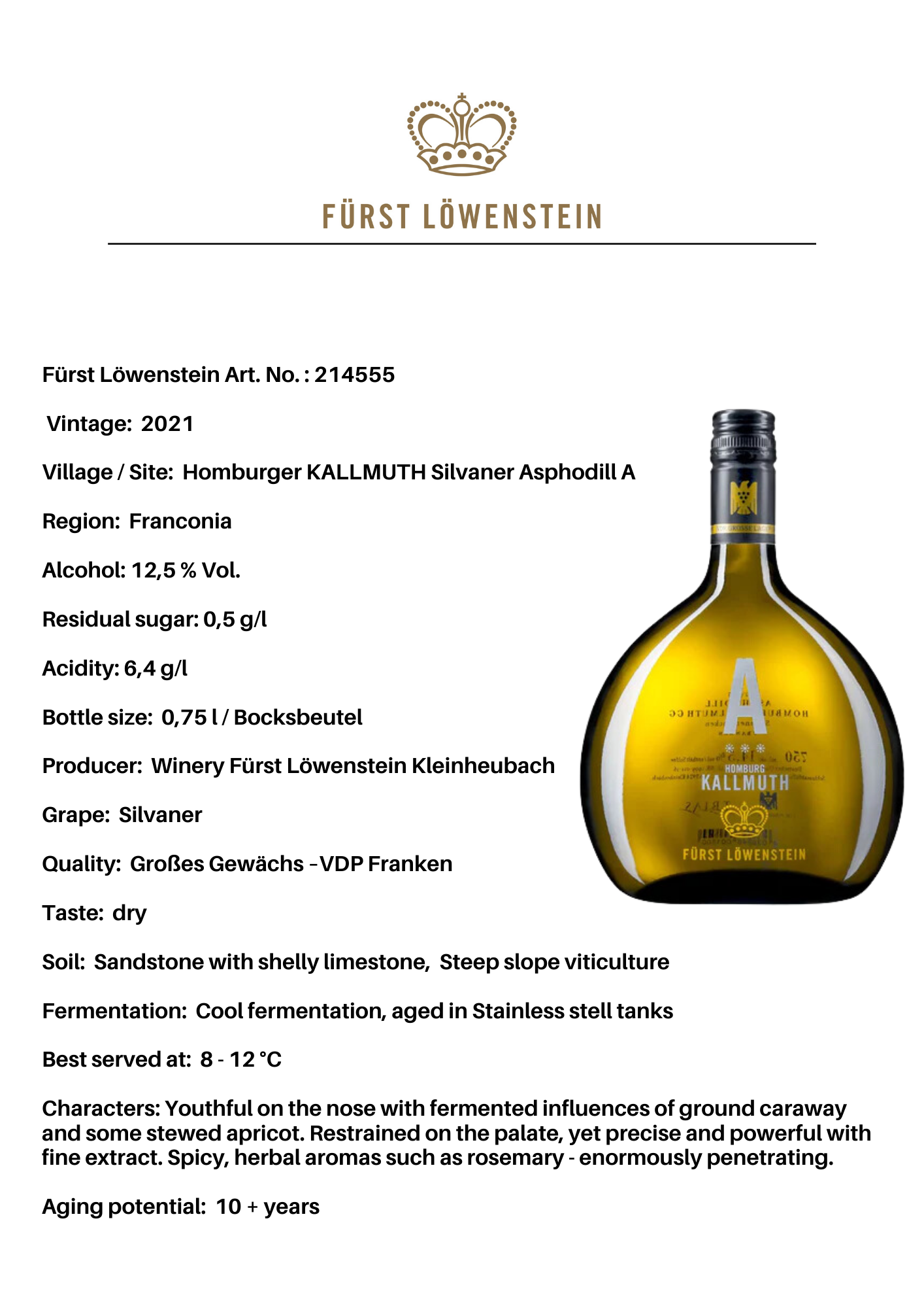 Furst Lowenstein Silvaner Asphodill Großes Gewächs 2021